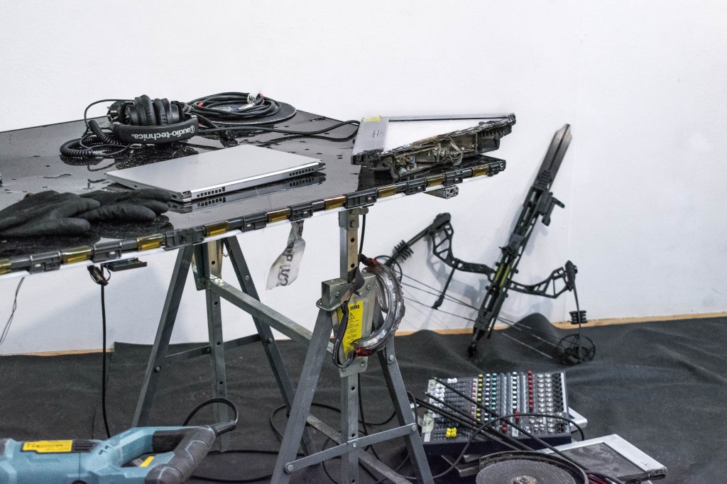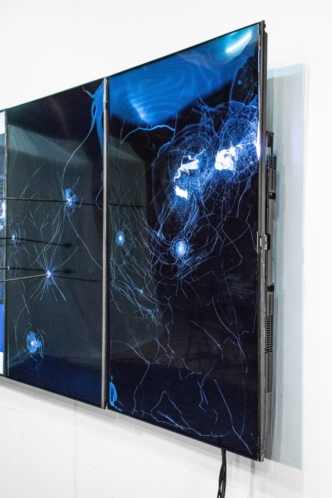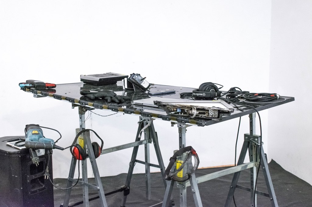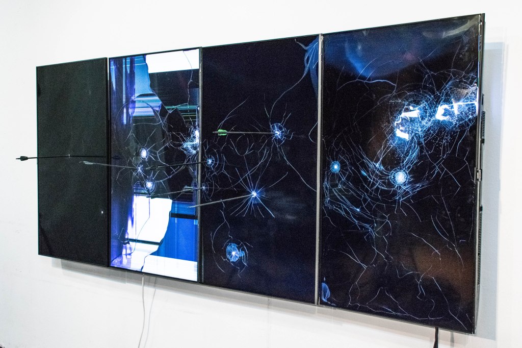 En un mundo saturado de imágenes digitales, inmateriales y atrapadas en la lógica del hiper-like, este ritual se plantea como una forma de resistencia. Las pantallas (de naturaleza inmutable y perfecta) se convierten aquí en cuerpos atravesables e intervenibles mediante un arco, un taladro o una radial. La dicotomía entre lo analógico y lo digital se convierte en un lugar de creación, donde la máquina no solo destruye, sino que performa una acción, un gesto.