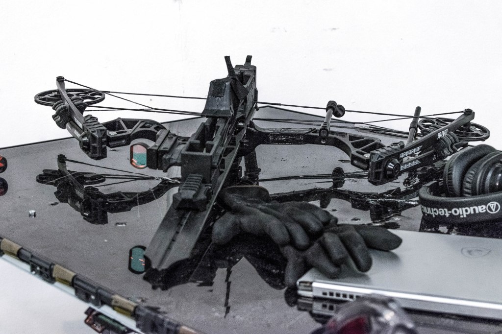 Entre juego y trabajo, el gesto oscila. Un ritual donde se habita la figura del cazador desde las dinámicas del videojuego (de un modo analógico) para devolverle a la imagen su cuerpo. Aquí la imagen no solo representa la violencia. La atraviesa. La encarna.