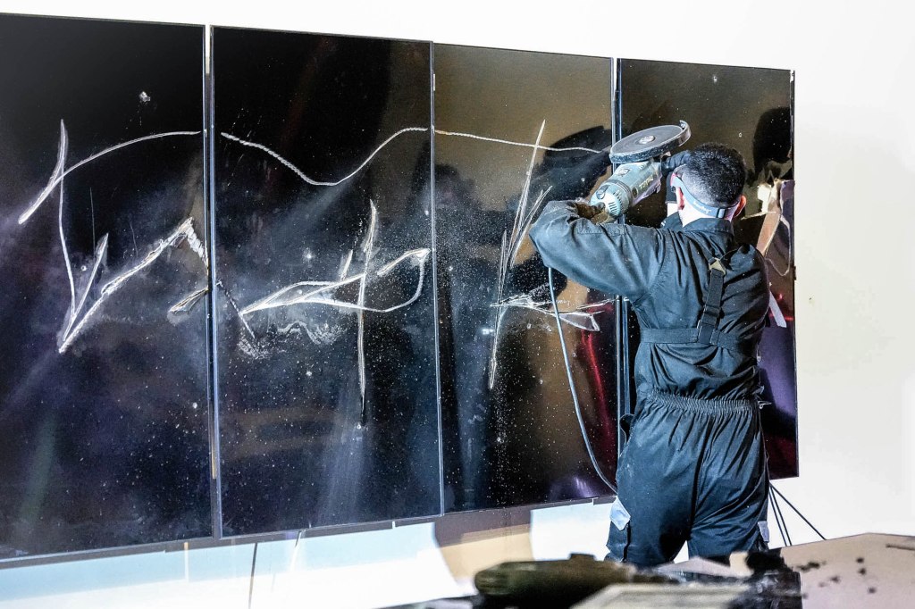 In a world saturated with digital, immaterial images trapped in the logic of hyper-likes, this ritual presents itself as a form of resistance. Screens (of immutable and perfect nature) become bodies to be traversed and intervened upon with a bow, a drill, or a cutting disc. The dichotomy between analog and digital becomes a site of creation, where the machine not only destroys but performs an action, a gesture.