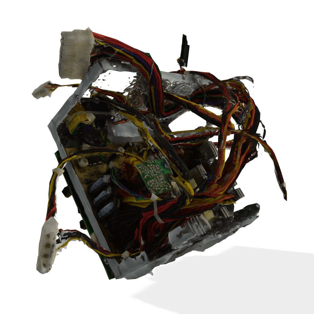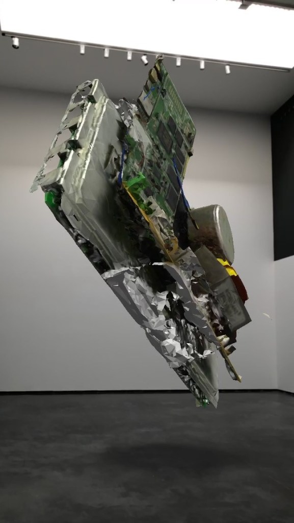 Las piezas se organizan tanto a partir de la cohesión de sus partes, en ensamblajes compactos de basura electrónica, así como en otras formas cuya fluidez y organicidad aluden a la sociedad líquida. Ambas propuestas posthumanistas amplían y aúnan la percepción de los elementos críticos a los que se enfrenta la crisis ecosocial actual.
