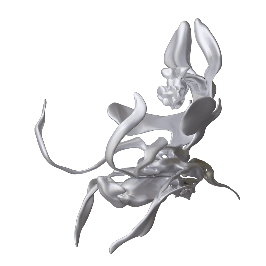 La inmersión en la virtualidad posibilita una experiencia sinestésica, en que las dimensiones espaciales se vuelven inciertas en virtud del movimiento corporal. La interacción con el espacio circundante, sosteniendo ante los ojos el dispositivo de mediación, lleva a la antigua reflexión de Spinoza acerca de “lo que puede el cuerpo”. A través de la proyección tecnológica de los sentidos se accede a la cualidad háptica que presentan estos objetos flotantes y rizomáticos.